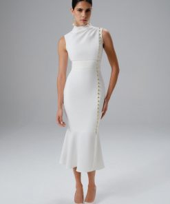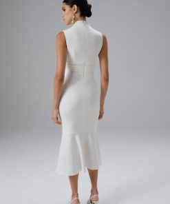 Lavish Alice Women’s Salma Fluted Sleeve Longline Fishtail Midi Dress In Blue Porcelain Print