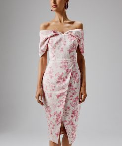 Lavish Alice Women’s Haley Micro Button And Loop Detail Volume Flared Midi Dress In Floral Broderie