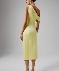Lavish Alice Women’s Bambi Asymmetric Neckline Pleated Satin Midi Dress In Yellow