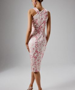 Lavish Alice Women’s Brielle Bonded Satin Obi Belted Halterneck Midi Dress In Pink Porcelain