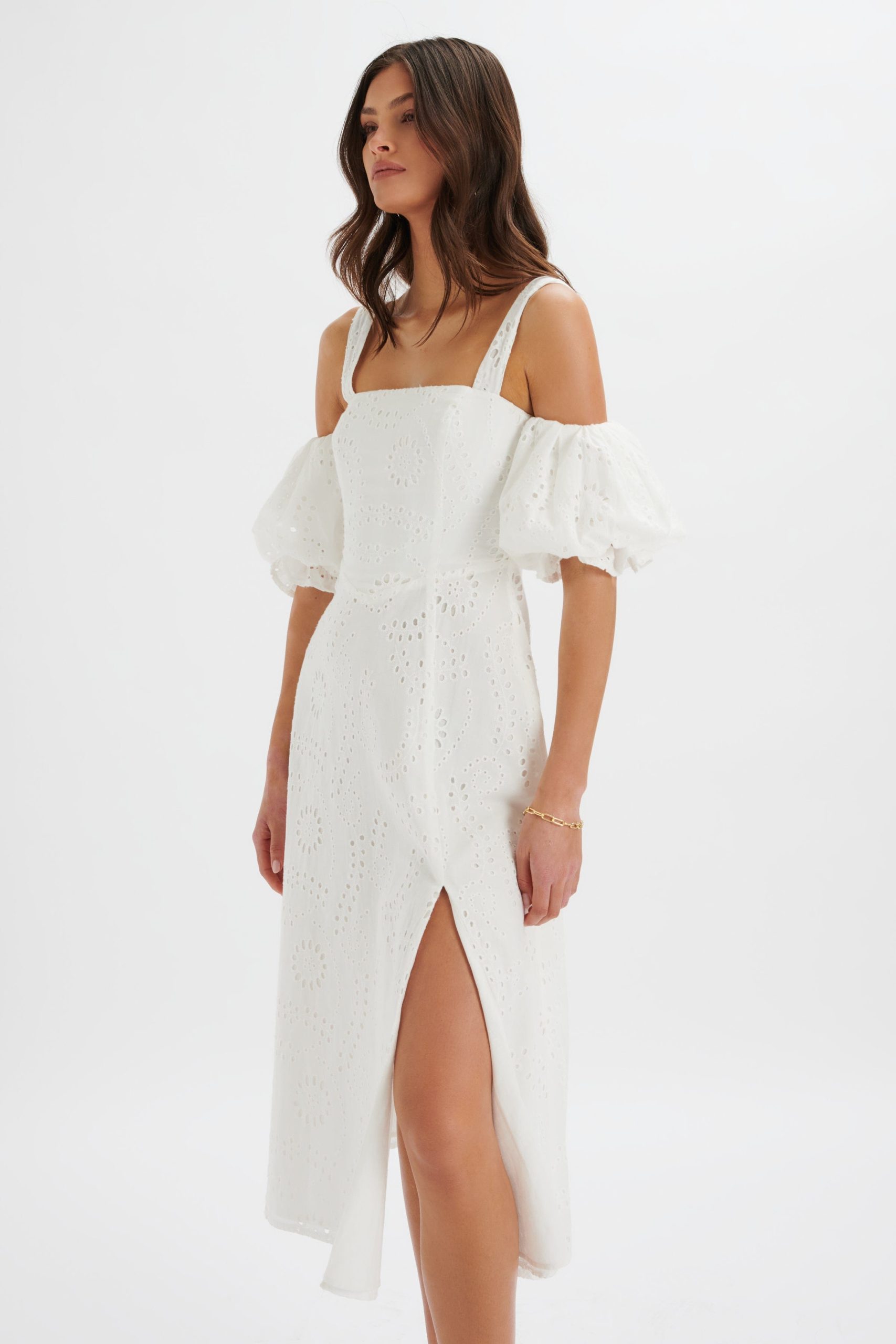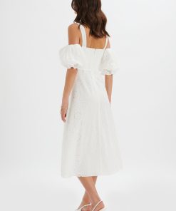 Lavish Alice Women’s Charli Off Shoulder Broderie Midi Dress In White