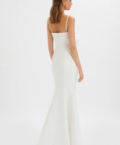 Lavish Alice Women’s Fleur Statement 3d Floral Satin Maxi Dress In White