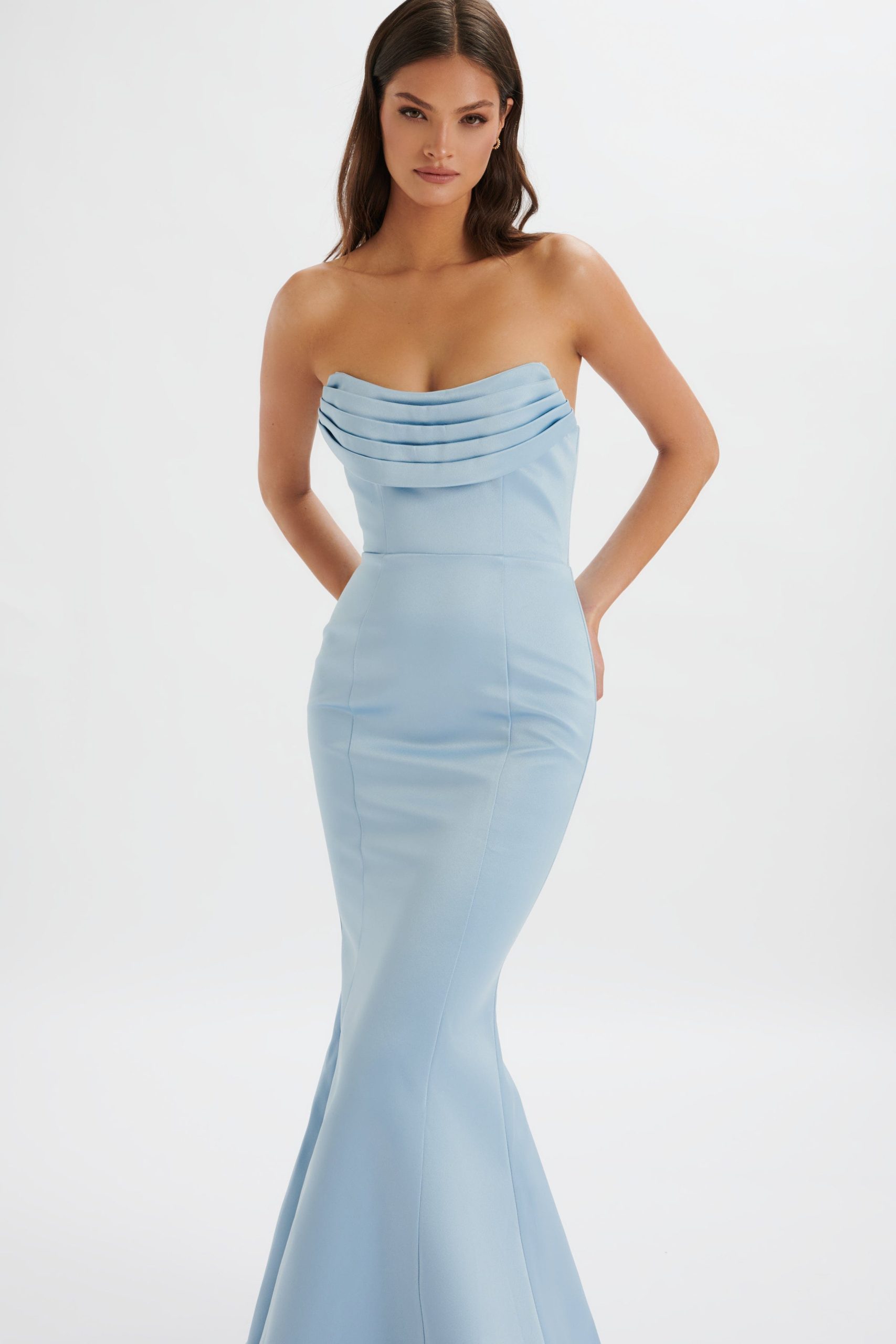 Lavish Alice Women’s Freya Bonded Satin Cowl Neck Maxi Dress In Dusty Blue