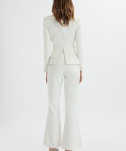 Expertly crafted with high-quality crepe in white, our JESSIE Jumpsuit lives up to its name with classic tailoring and elegant details. The contrast bonded satin pleated bust, silver diamante trim, and flattering peplum waist create a premium silhouette, while the fit-and-flare tailored trouser and pin tuck detail add elongated contour and shaping. A must-have for any formal occasion.