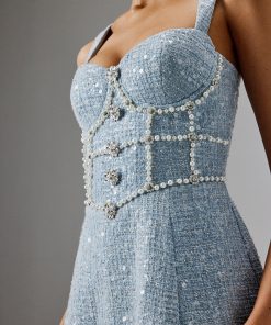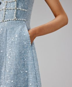 Lavish Alice Women’s Kira Pearl Embellished Boucle A Line Midi Dress In Blue