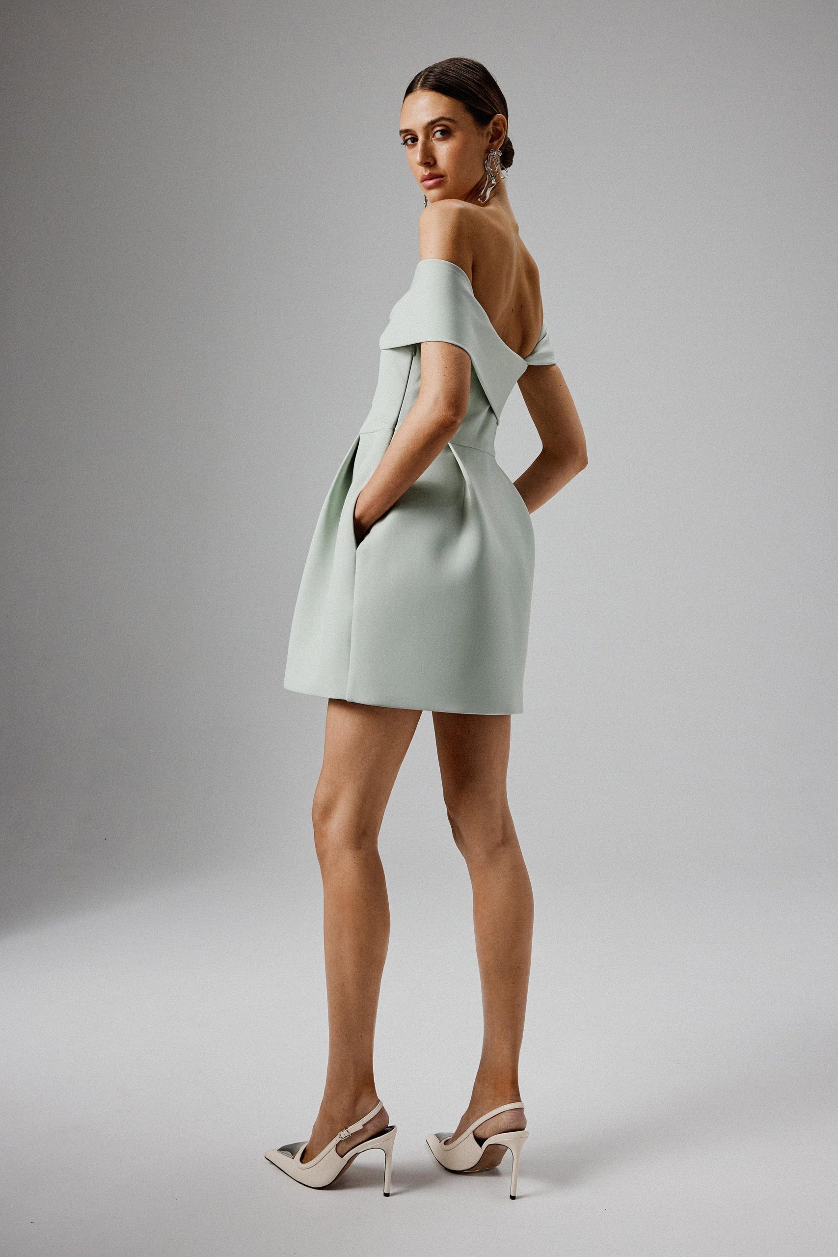 Indulge in elegance with the MILA Twisted One Shoulder Mini Dress. Crafted from premium crepe in a stunning sage green hue, this dress features a chic twisted one shoulder design and a flattering tulip skirt silhouette. With functional side seam pockets, it’s perfect for any occasion, from weddings to date nights. Make a sophisticated statement with this timeless dress.