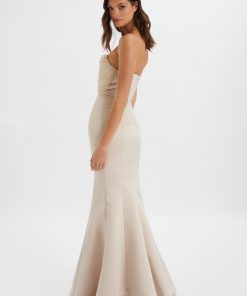 Simply decadent, our RENATA Bonded Satin Corset Maxi Dress in Champagne is an opulent choice for any upcoming nuptials. Luxe satin flows down to the floor for a dramatic fishtail finish whilst corsetry detailing is offset by soft, feminine draping.